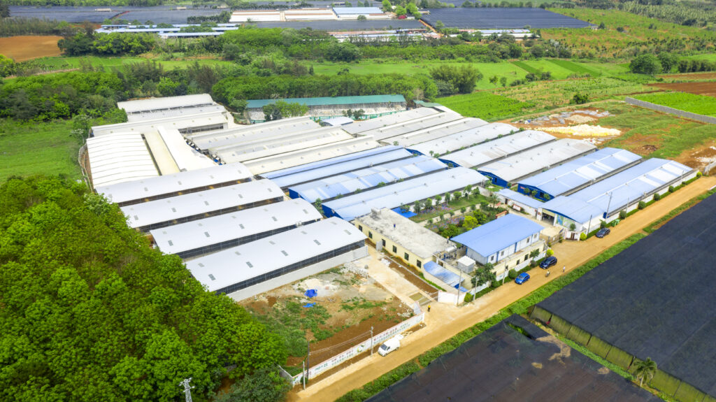 公司自2017年涉足肉鸽养殖领域以来,现已建成23栋现代化标准鸽舍,1栋后备种鸽飞棚,1栋育肥鸽舍以及1栋粪污处理厂房,同时配备了仓库、药房、种蛋孵化用房、员工宿舍和行政用房等完善的配套设施设备,总占地面积50亩。共养殖种鸽达7万对,年生产优质乳鸽150万只,是一个现代化的养殖基地。